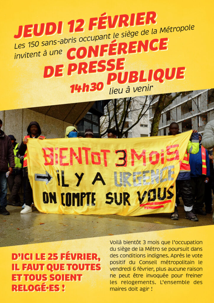 Voilà bientôt 3 mois que l’occupation du siège de la Métro par 150 sans-abris se poursuit dans des conditions indignes.