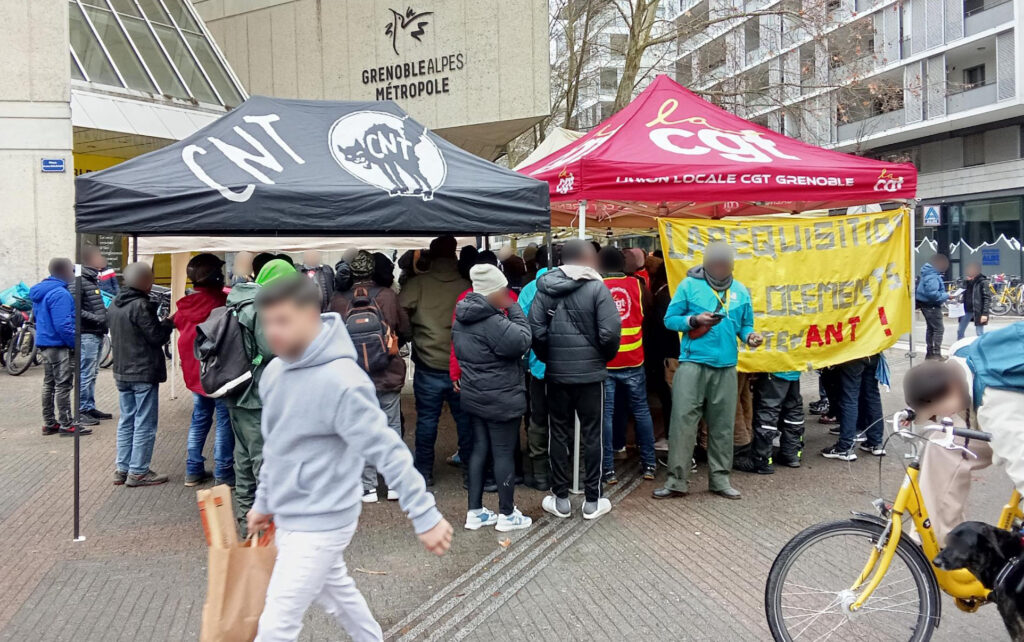 Le 19 novembre 2025, plusieurs familles de la Villeneuve, expulsées ou menacées d’expulsion par le bailleur social Actis sous la responsabilité de Grenoble Alpes Métropole, rejointes par d’autres familles à la rue, occupent le siège de la métropole (1 place André-Malraux à Grenoble) afin de faire valoir leurs droits bafoués et dénoncer un système de double exploitation : par la plateforme numérique de livraison Deliveroo et par les marchands de sommeil.