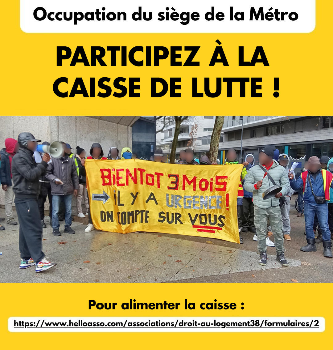 RAPPEL : la réalité de cette occupation, c’est de vivre pour ces 150 personnes dans une salle de réunion de la Métropole. C’est aussi lutter, continuer à travailler et essayer d’avoir un semblant de vie “normale”, notamment en s’occupant des enfants. Tout cela implique des besoins financiers pour pallier un lieu de vie totalement inadapté et une organisation de vie bouleversée.